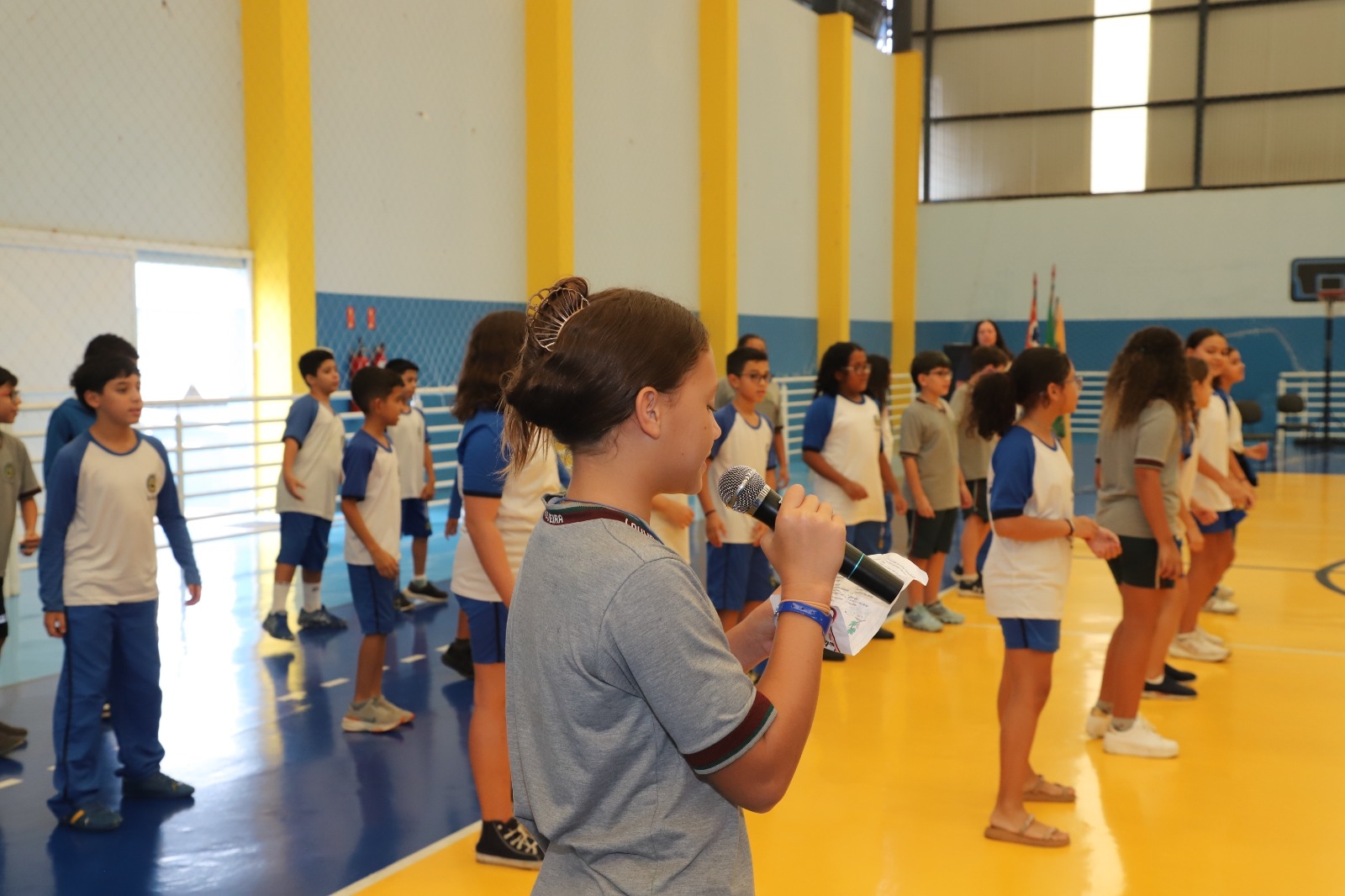 Os estudantes dos 5º anos também participaram ativamente: o 5º ano B realizou um levantamento de fatos históricos da cidade, apresentado em forma de resumo, além da poesia “O lugar onde eu vivo”. Já o 5º ano A apresentou uma paródia da música “Meu abrigo”, celebrando Louveira como um espaço de acolhimento.