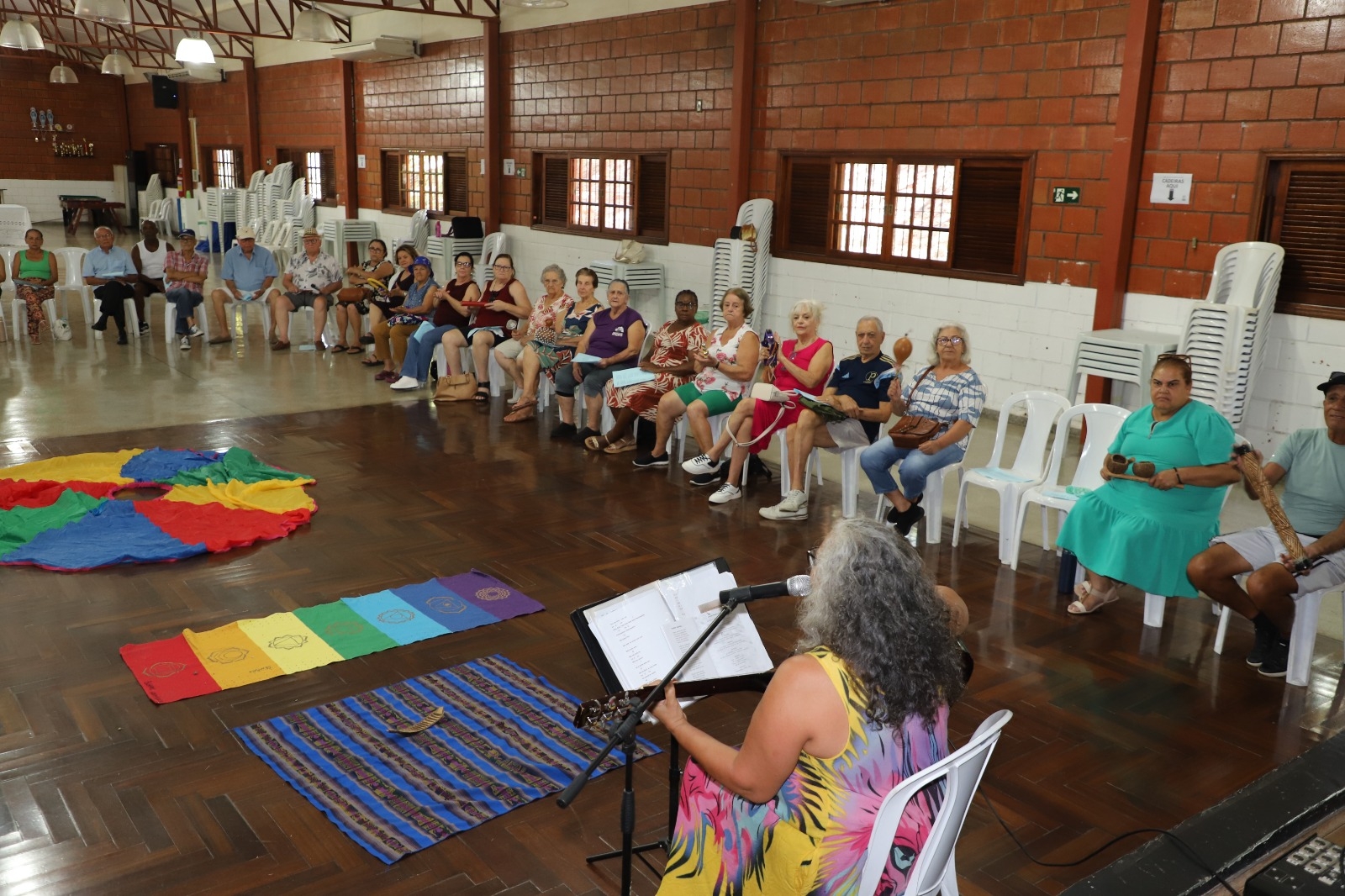 Para encerrar a atividade, todos foram convidados a participar de um momento de dança, promovendo integração e alegria entre os participantes. Durante o evento, também foi servido um café com bolos, chá e bolachas, reforçando o clima acolhedor da tarde.