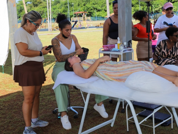 Durante todo o evento foram realizados sorteios de brindes e oferecidos atendimentos gratuitos nas áreas de auriculoterapia, massoterapia, estética, bioimpedância, cabeleireiro, barbearia, design de sobrancelhas e esmaltação, realizados por profissionais voluntários que contribuíram para tornar a manhã ainda mais especial.