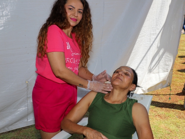 Durante toda a manhã, as participantes puderam aproveitar uma série de serviços gratuitos e atrações preparadas especialmente para a data. Entre os destaques esteve a Tenda da Saúde, que ofereceu aferição de pressão arterial e verificação de glicemia capilar, proporcionando à população a oportunidade de realizar cuidados preventivos de forma rápida e gratuita. Já a Tenda da Coordenadoria da Mulher promoveu orientações, dinâmicas interativas e a distribuição de brindes, reforçando as ações de acolhimento, informação e valorização das mulheres no município.