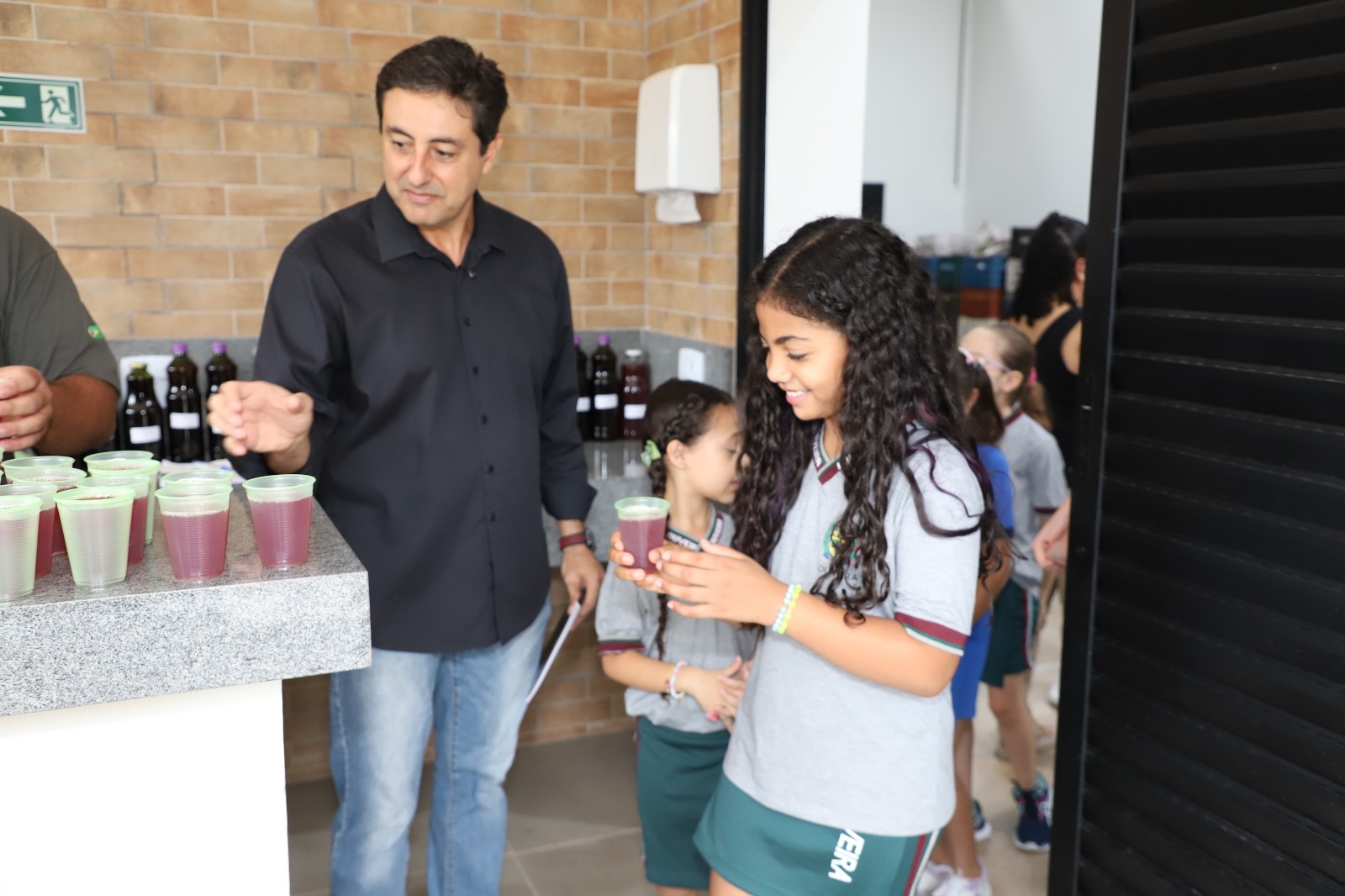 Durante a visita à Fábrica Municipal de Sucos, os alunos foram acompanhados do secretário municipal de Desenvolvimento Econômico Jailson Marinho e conheceram de perto o processo de produção da bebida elaborada a partir das uvas cultivadas no município. A atividade reforçou a importância da agricultura local, valorizando os produtores da cidade e evidenciando o cuidado com a qualidade da alimentação oferecida na rede municipal.