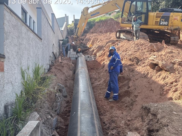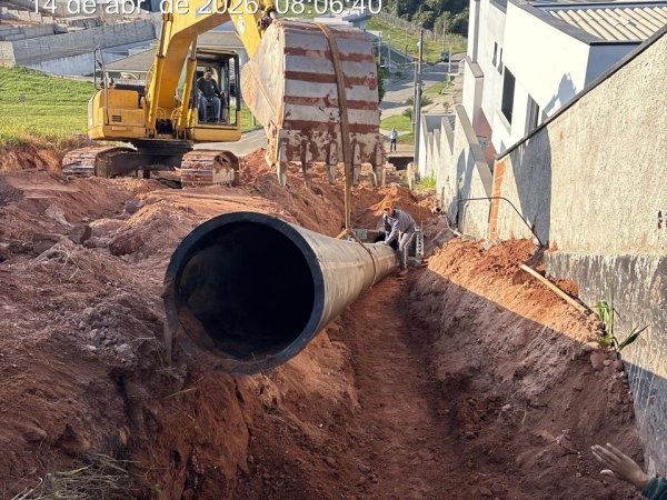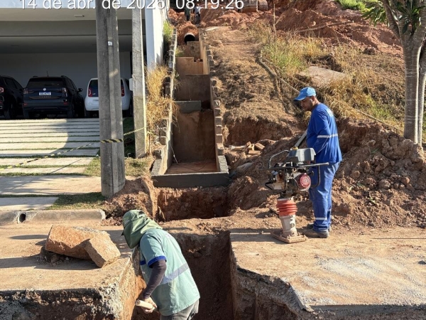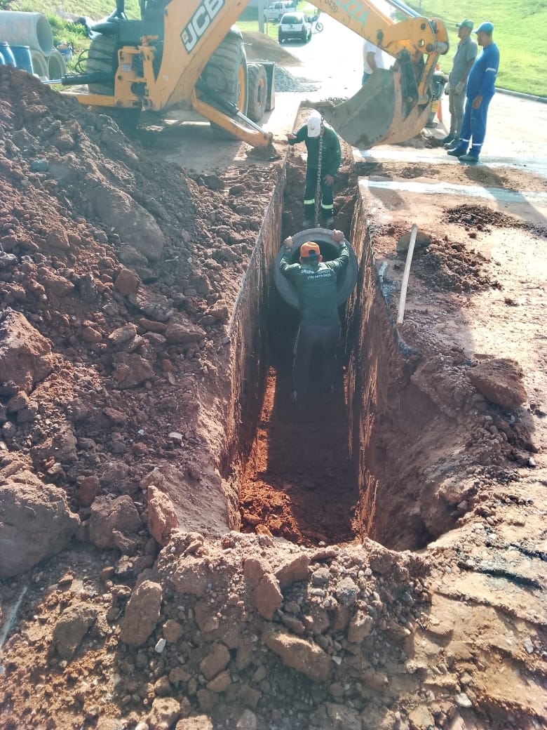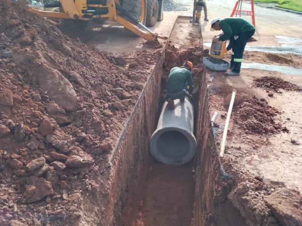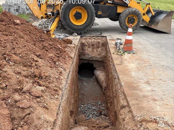 A obra também incluiu a ampliação do diâmetro da tubulação existente, que passou de 400 mm para 600 mm, proporcionando maior vazão e contribuindo para a prevenção de novos processos erosivos.