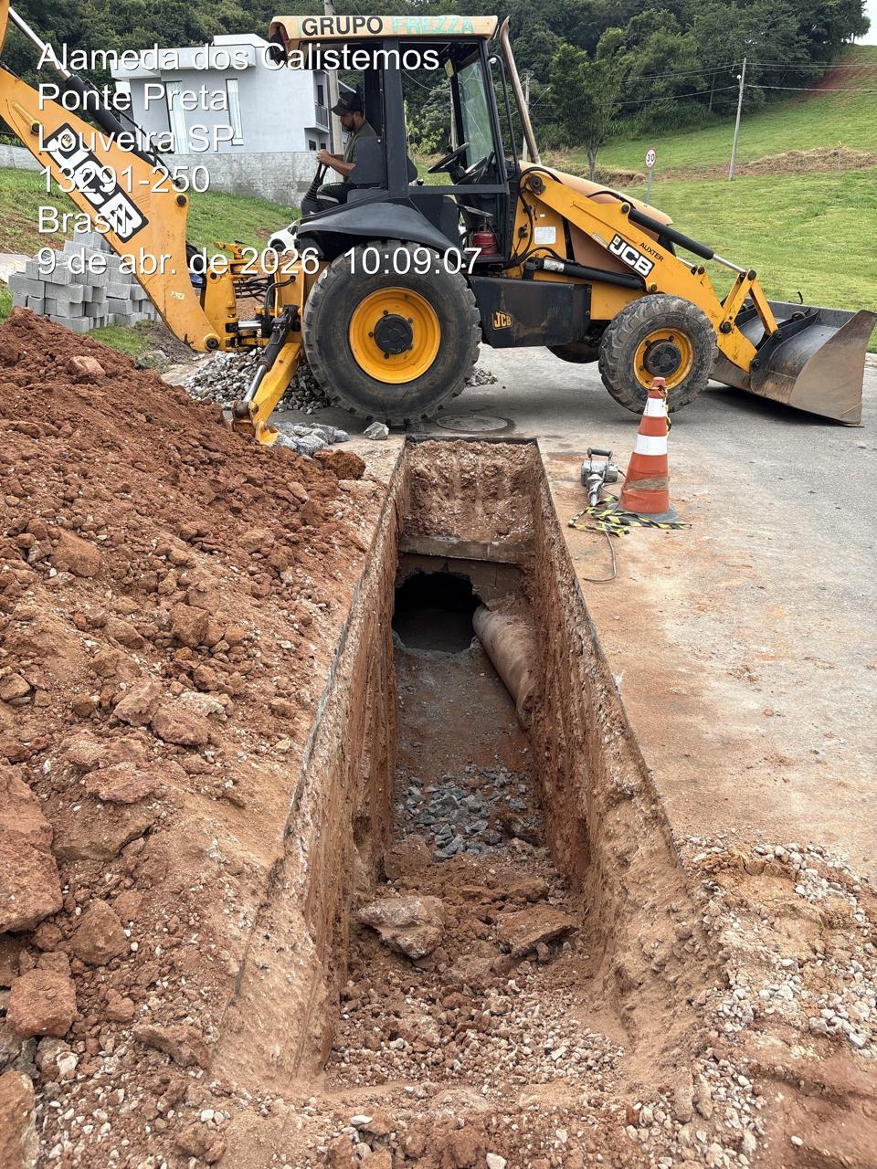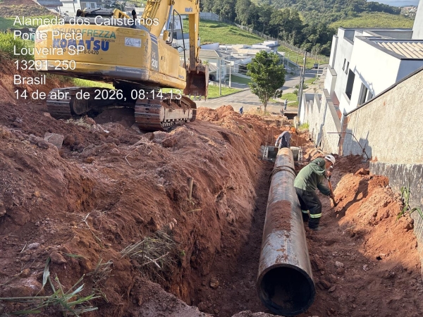 A Prefeitura de Louveira, por meio da Secretaria de Desenvolvimento Urbano, está realizando uma importante obra de drenagem na Alameda dos Calistemos, no Santa Isabel II, com o objetivo de solucionar um problema antigo de erosão causado pelo rompimento de uma escada hidráulica.