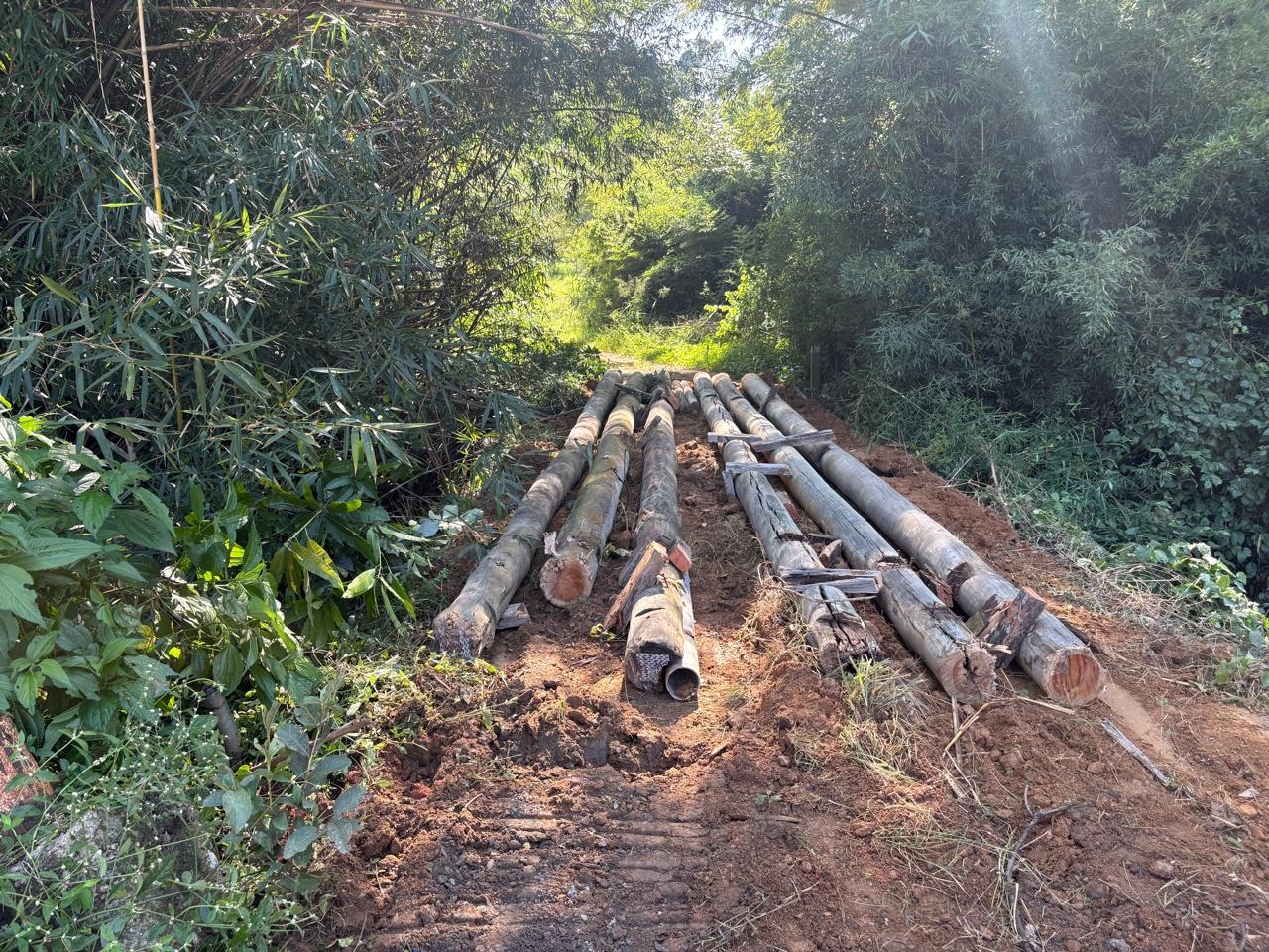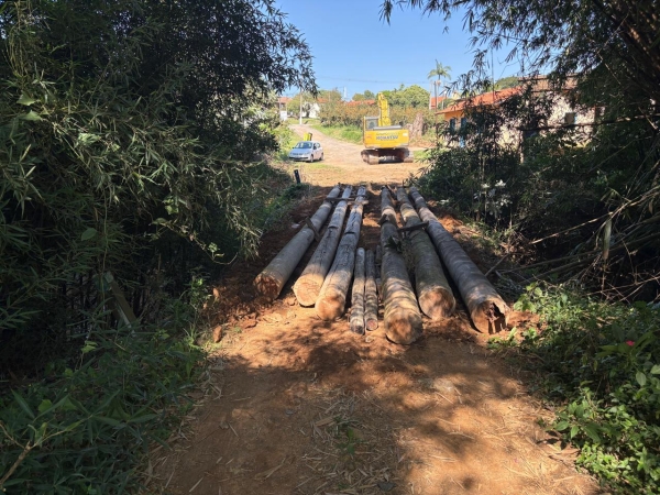 A estrutura, utilizada principalmente para o escoamento da produção agrícola da região, havia cedido, comprometendo o acesso e a circulação de veículos no local.