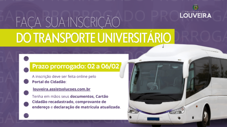 Prefeitura prorroga inscrições para o Transporte Universitário e Técnico até dia 06/02